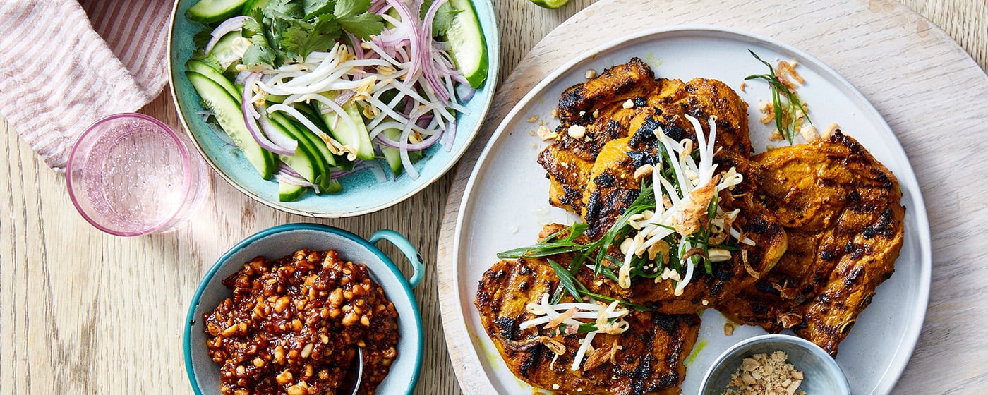 A simple cucumber salad is a cooling counterpoint to the beef satay.